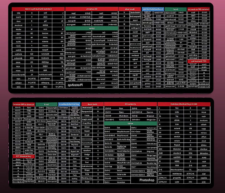Experience effortless productivity with our Shortcut Keys Mouse Pad designed for real efficiency at your fingertips. Instantly access essential Office and Photoshop shortcuts and complete tasks in a fraction of the time โ no searching, no guessing. Built with a smooth, precision-optimized surface and durable anti-slip design, it elevates both speed and accuracy for work, design, and gaming. Lightweight, stylish, and built to last, it transforms your desk into a smarter workspace. Notice the difference true efficiency makes โ anytime, every day.